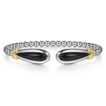 14 Karat Yellow Gold and Sterling Silver Bujukan Bangle Bracelet with Black Onyx