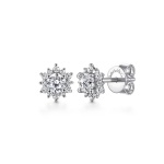 14 Karat White Gold Diamond Classic Stud Earrings. These earrings feature a halo style with 0.52 carats of diamonds.