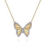 14 Karat White and Yellow Gold Diamond Cut Butterfly Necklace