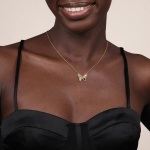 Transform your look with this 14 Karat White and Yellow Gold Diamond Cut Butterfly Necklace. This piece combines the brilliance of white and yellow gold and a diamond-cut design rhat adds a touch of sparkle. These diamonds have a total carat weight of 0.25 carats. The butterfly pendant, a symbol of transformation and beauty, makes this piece an ideal gift for someone special.