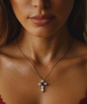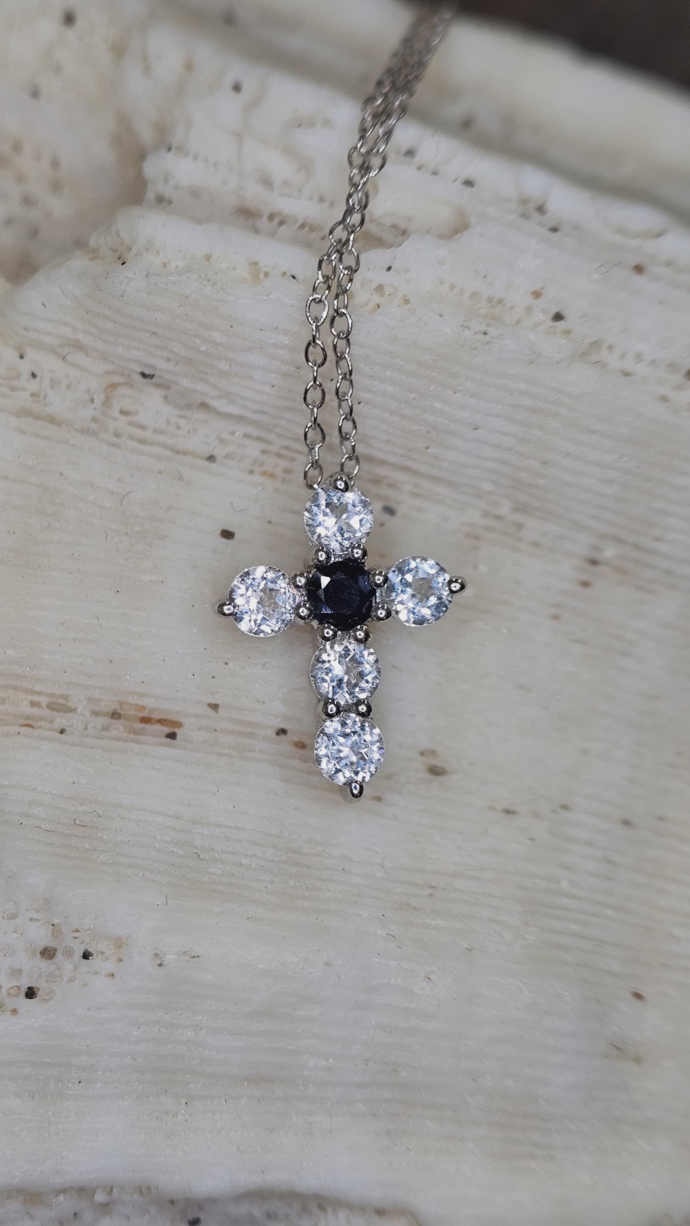 Online Only - Sterling Silver Sapphire and White Topaz Cross Pendant