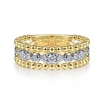 14 Karat White and Yellow Gold Diamond and Bujukan Bead Ring