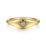 14 Karat Yellow Gold Diamond Starburst Signet Ring