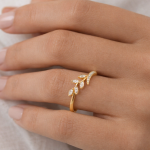 Crafted in radiant 10K yellow gold, this elegant ring features a graceful vine design accented with 0.08 carat total weight of sparkling diamonds. Inspired by nature, the delicate motif wraps beautifully around the finger, adding subtle shimmer and organic charm.